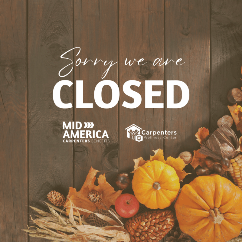 Our Benefit offices and Carpenters Wellness Centers in St. Louis and Kansas City will be closed in observation of the Thanksgiving holiday.